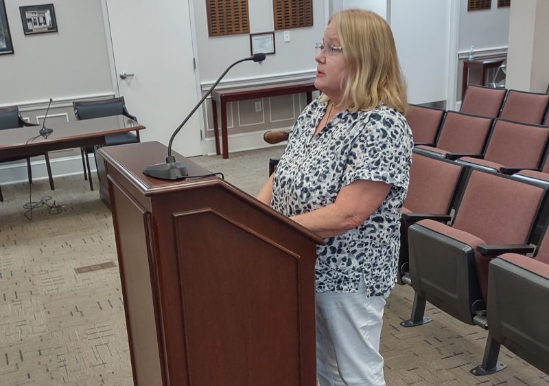 Martha Britton explains her short-term tourist rental application to the planning commission. The commission voted unanimously to recommend approval.