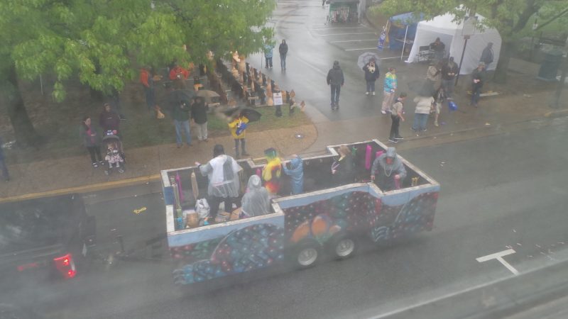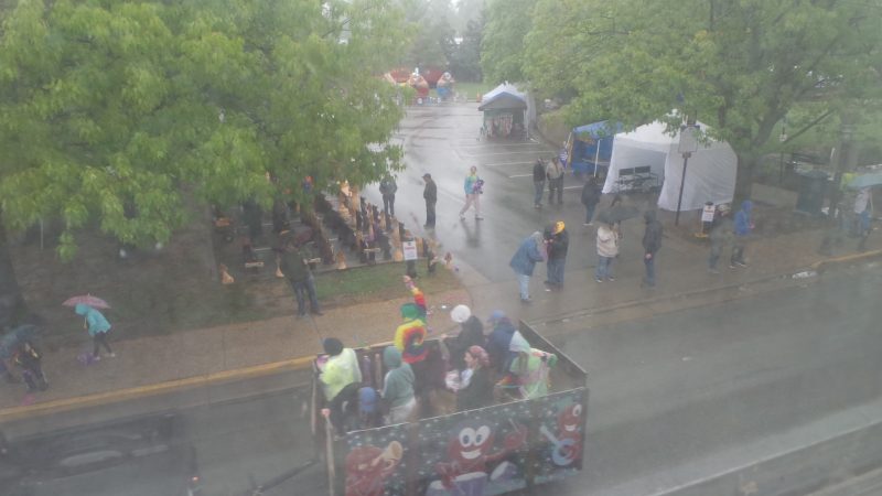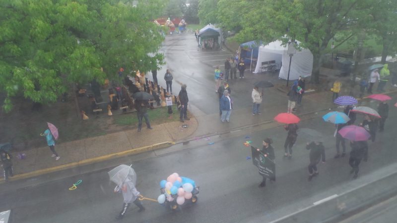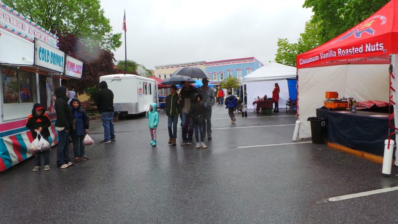 At least it wasn’t a steady, HARD rain on the Family Fun Day Parade, as well as booths, rides, arts, and business displays officially opened at 10 a.m. with a scheduled closing time of 6 p.m. Saturday, May 7th. If not packed the entire day, there appeared to be a steady stream – oops, is that a poor choice of words in this rainy day report context? – of hearty attendees, young and old alike, through the Historic Downtown Front Royal Gazebo-and-Pavilion anchored Village Commons area.