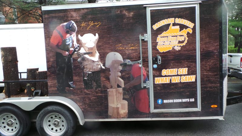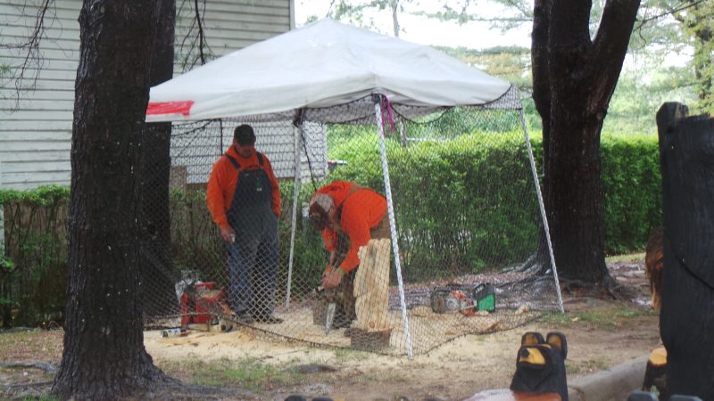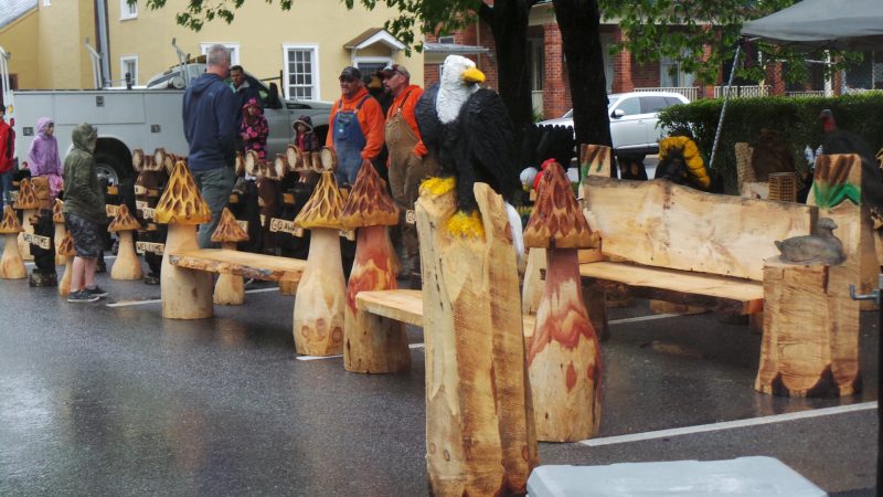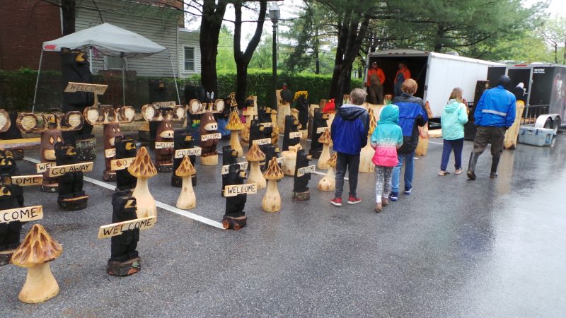 Wait, are we welcome or not, this family may be wondering as they peruse the ‘Mason Dixon Boys Chainsaw Carvers’ display. That eagle might be a good lookout in the garden. There was even some on-site carving going on.