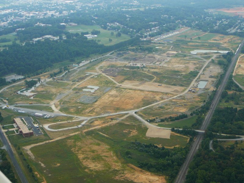 Harold told us he had hoped to be involved in seeing several projects the reform EDA board has been working toward over past 4 years come to fruition. Prominent among those was “Avtex taking a firm direction with an agreed upon development plan”. First of two aerial photos (thanks to Reggie Cassagnol and CassAviation some time ago) looking southwest with a sliver of Kendrick Ln. and the EDA office complex lower left, is the planned 148-acre Royal Phoenix Business Park. Below, looking north, the business park is in upper center bordered by the then soon-to-be Soccerplex field area, skatepark, and residences lower right-center of photo, with the large Conservancy Park area to left abutting the river.