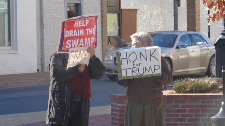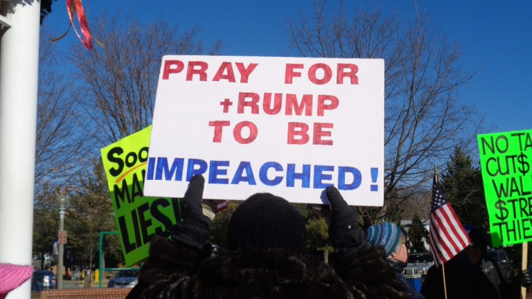 As Christmas 2017 approaches what is being wished for in the way of “presents” along Front Royal’s Chester Street political divide is VERY different. Signs displayed December 13 on the Len Sherp-organized Vigil for Democracy side indicate a growing desire to see impeachment proceedings launched against the president as charges are leveled and guilty pleas entered amid mounting Special Prosecutor’s evidence of Trump staff and family pre-2016 election interactions with Russian operatives designed to help gain Trump’s election. A variety of other wishful issues are displayed toward the end of this story.