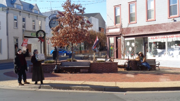 On the other side of the street, the pro-Trump contingent that joined original Trump supporters Ralph and Michael Waller in front of their pawn shop in late May had reduced its focus to prayers and honks of support for the president, with a nod toward prayerful swamp-draining. Of course that reduced focus could have been impacted by the fact there were only two members of that faith-based contingent present on a chilly second Wednesday of December. On the Vigil for Democracy side numbers were also down somewhat, but continued in double figures at a head count of 15.
