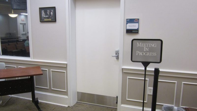 Indeed, there was a ‘meeting in progress’ after 6 p.m., but it was behind closed doors till shortly before 7 p.m. on a variety of topics, including the new County Administrator search, library services, and State and local road renaming guidelines.