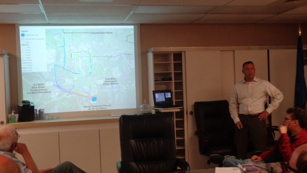 Steve Steele reviews engineering consultant CHA’s recommendation of a parallel water line to provide redundancy in case of a main line break.