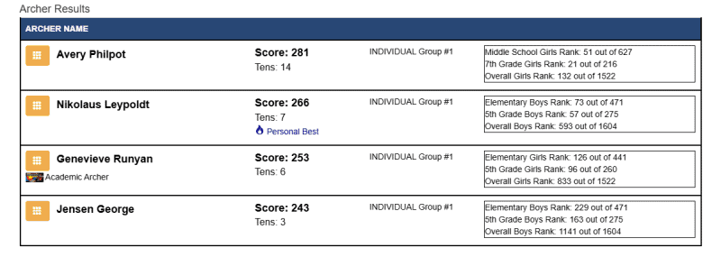 Evan Hill, a rising senior, also reached a personal best, scoring 264 in the IBO 3D flight. It was his highest score to date and a clear sign of his continued growth in the sport. For Hill and his teammates, the event marked a moment of both personal and collective success.