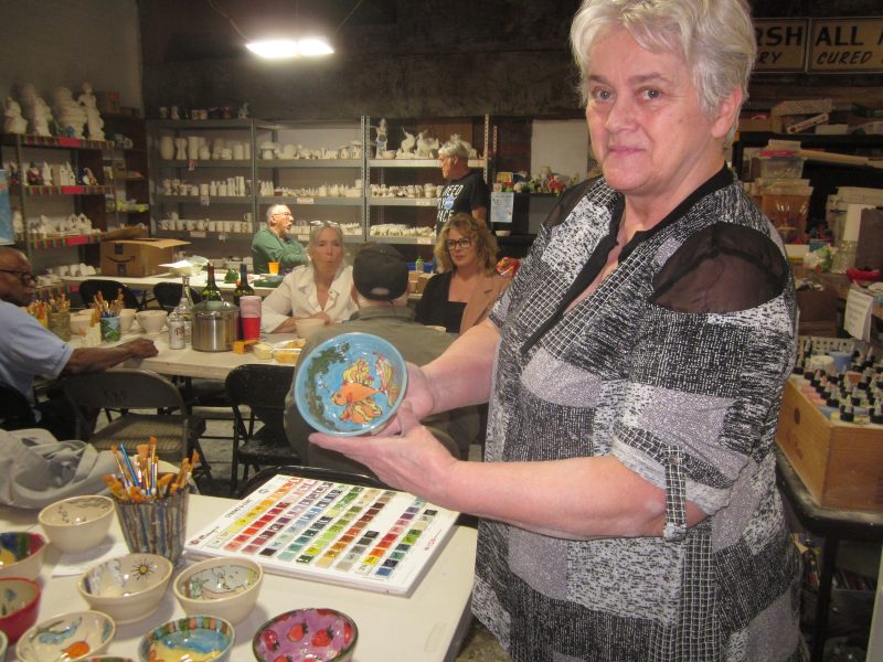 “So, they’re available to paint year round. Right now we have over 150 and 30 more coming,” Arline said of the community-wide effort on behalf of the House of Hope men’s shelter, noting other friendly potters who also donate some bowls for the cause.
