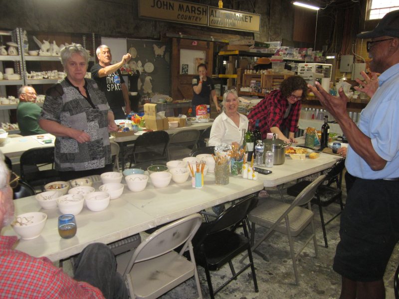 Arline prepped us on the pending empty bowl painting as 5:30 p.m. approached and volunteering artists including Mallory Deinert of Penny Lane Hair Company, Sue and Chris Laurence of Key Move Properties and White Picket Fence, along with some familiar faces like Greg Williams and Walt Mabe, among others, were arriving.