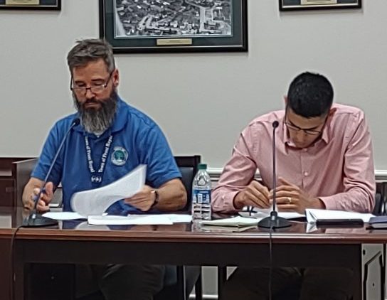 Zoning Administrator Chris Brock, left, reviewed details of a Bed & Breakfast Special Use Permit application and responded to questions about the most recent draft of council-proposed changes to downtown zoning regulations, as he approaches the end of his term as Interim Planning Director.