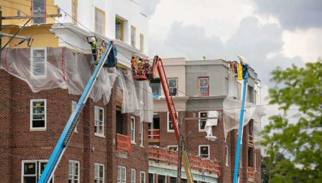 New housing is under construction in Richmond, Va. State lawmakers around the country are working across the aisle to pass housing legislation. (Photo by Parker Michels-Boyce/Virginia Mercury)