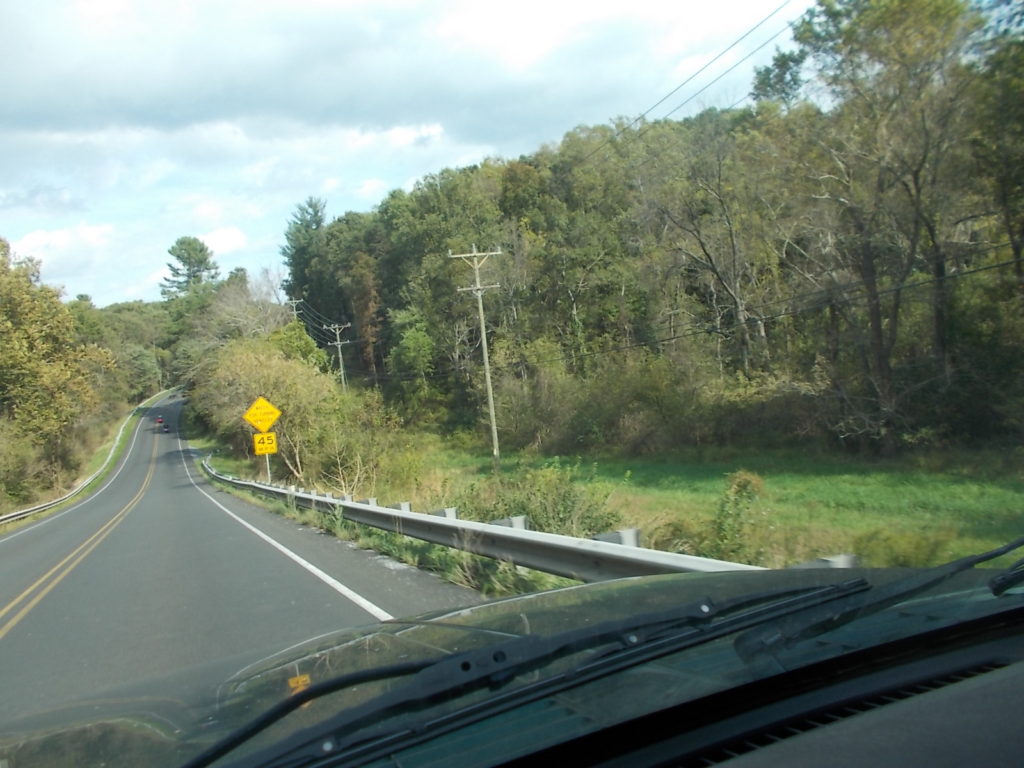 ‘Watch for turning vehicles – 45 mph’ sign approaching High Knob from town
