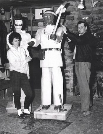 Betty Ambrose, Native American Indian with tomahawk, and Ed Ambrose, circa 1963. Courtesy Stone House Foundation, Stephens City, VA.