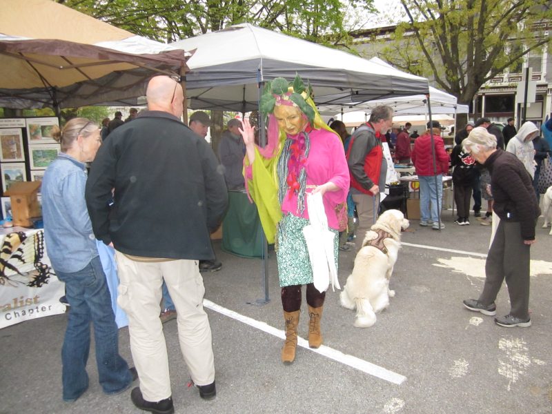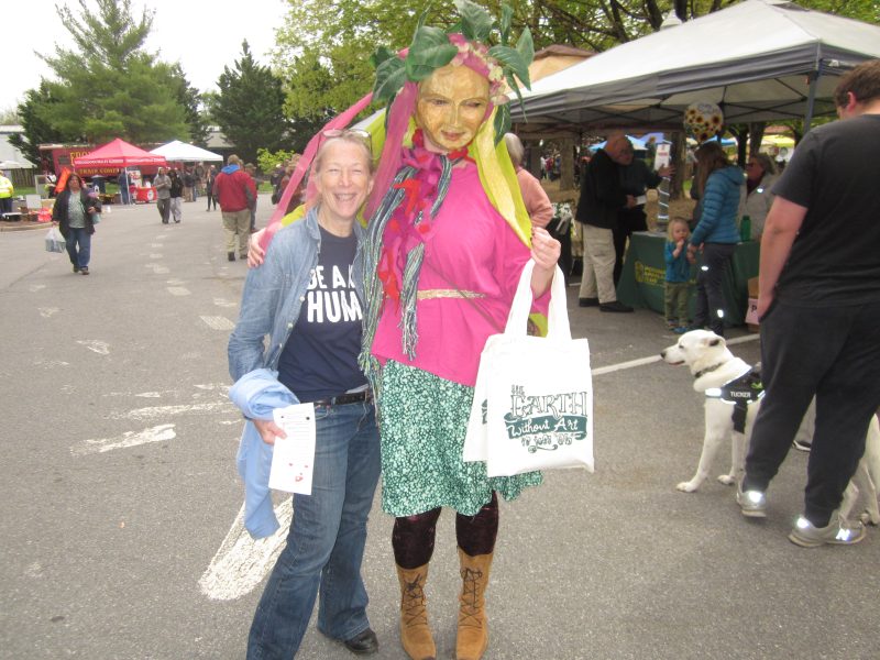 A dinosaur-kid standoff; and below the plant lady wanted to make it perfectly clear that she was with this representative of the Stone Branch Center for the Arts located not far away on E. Main St. in downtown Front Royal.