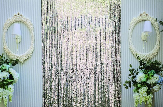 • Flowers. A wall of flowers is the perfect romantic backdrop. Match the blooms to your wedding colors or opt for white or red roses. Alternatively, create an ombre effect from light to dark using a variety of flowers in an array of hues.