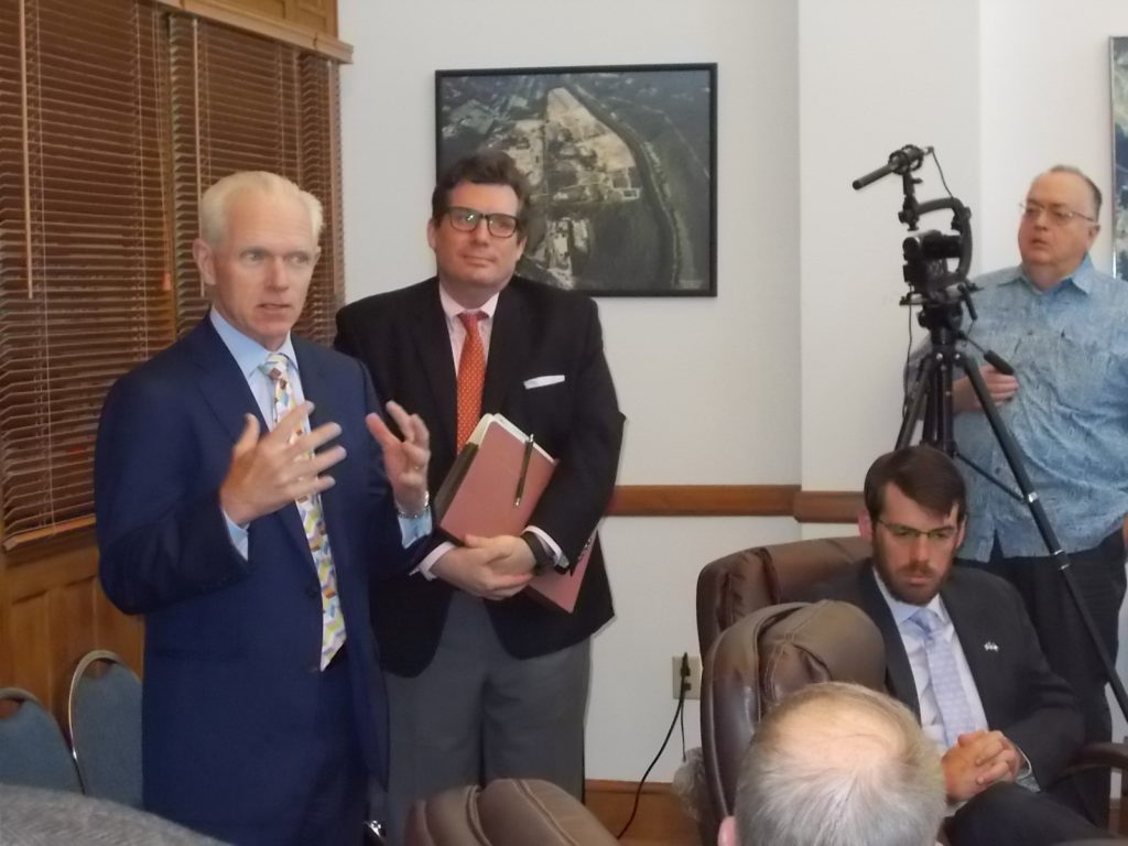 Pete Gallagher, CFO Valley Health, left, and Mike Graff of McGuire Woods made the case for a municipally-supported bond issue to help finance the new hospital construction.