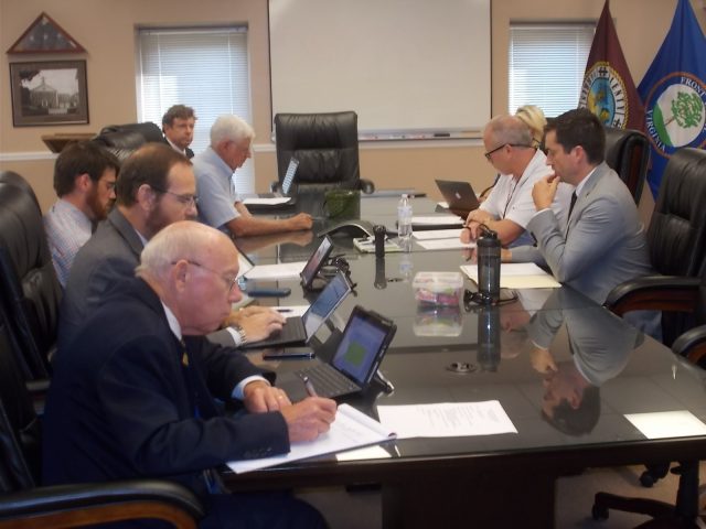 Soon-to-be-departed for other horizons County-EDA Attorney Dan Whitten, left, Committee Chair Archie Fox and new EDA Executive Director Doug Parsons listen to the noise from the other side of the table.