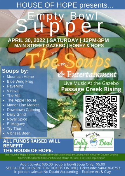 As a special treat, the band has agreed to include Ed from the House of Hope – Front Royal VA to play a song or two as a guest. Ed is very excited to get back on stage for this performance. If the bowls and the soup have not tempted you to join our event this year…. maybe this announcement might do the trick!