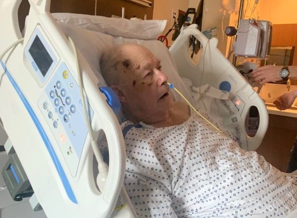 Friends Ralph Ennis left, and Ralph Waller in Waller’s East Main St. Pawn Shop in Front Royal. Below, Ennis in Winchester Medical Center prior to his release to hospice care where his death occurred 13 days after the aborted arrest incident of April 2, 2022. Courtesy Photos Waller family