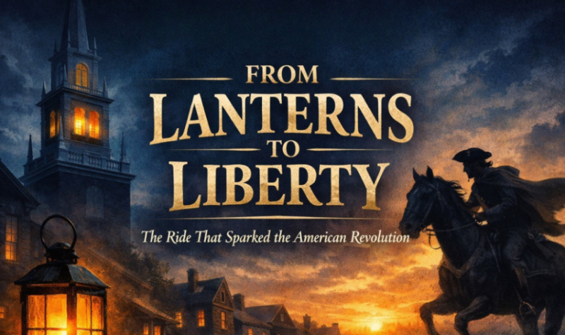 The night concludes with a dramatic recreation of “One if by land, two if by sea,” followed by a musket display under the spring sky.