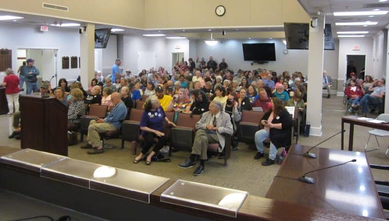 Cheryl Cullers was the first supervisor to seat themselves at the dais for the 7 p.m. open meeting. Below, the crowd responded to Cullers’ loan presence at the dais with a rousing ovation. (See this on the Royal Examiner video at :05 mark)