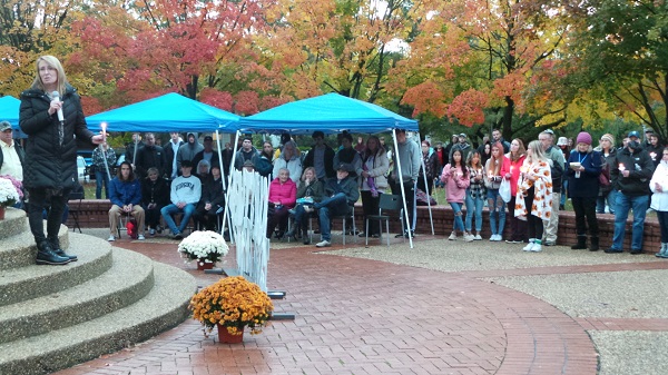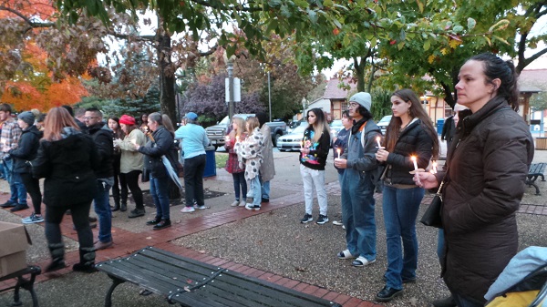 Candles were distributed and lit in memory of a life lost too young. Below, a longer perspective on the crowd Tuesday night with many lit candles as the first freeze of this fall-winter season approached.