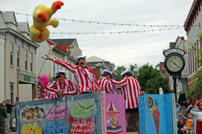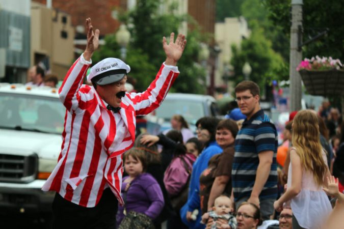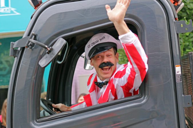 The crowd loves Crazy Willy, the ice cream man.