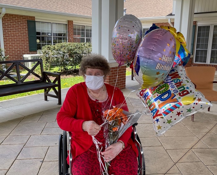 Every year, Della’s daughter, Kelly Ashby, throws a big party for her mother with family and friends. Last year was one of the first years in a long time Della and her family were not able to celebrate together. During April of 2020, the Nursing Center was facing strict lock down and visitation restrictions due to the COVID-19 pandemic.