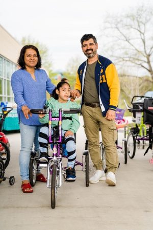 Pediatric patient, Farriah Siddiq posts proudly with her parents during the Pediatric Bikeathon Event.