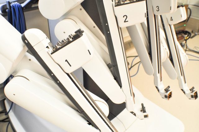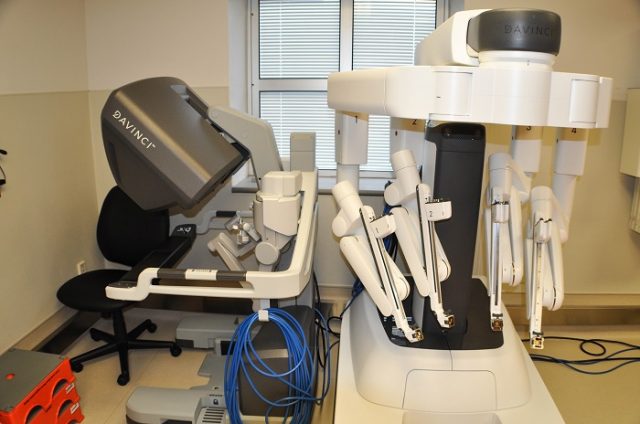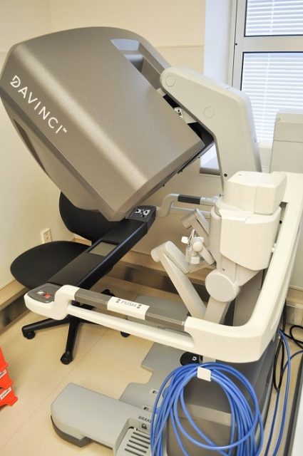 The surgeons are 100% in control of the robotic-assisted da Vinci System, which translates his/her hand movements into smaller, more precise movements of tiny instruments.