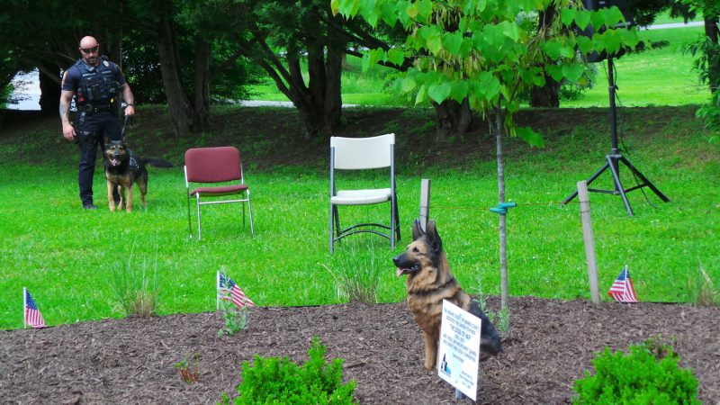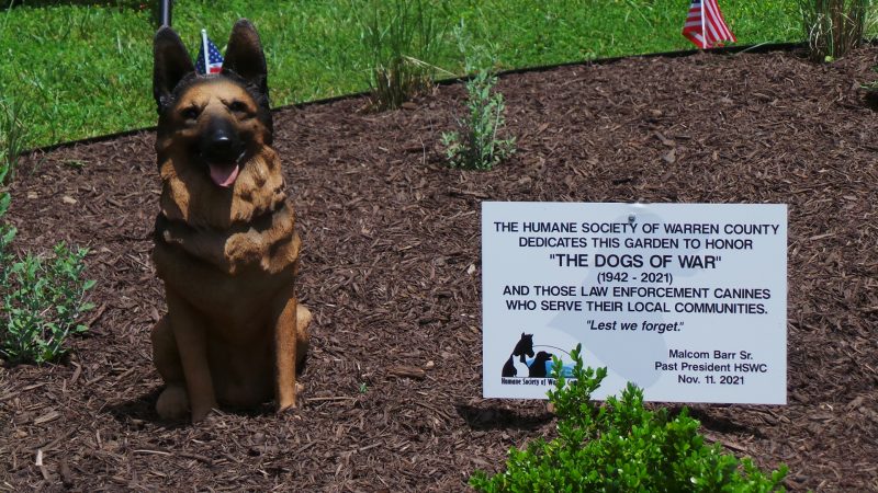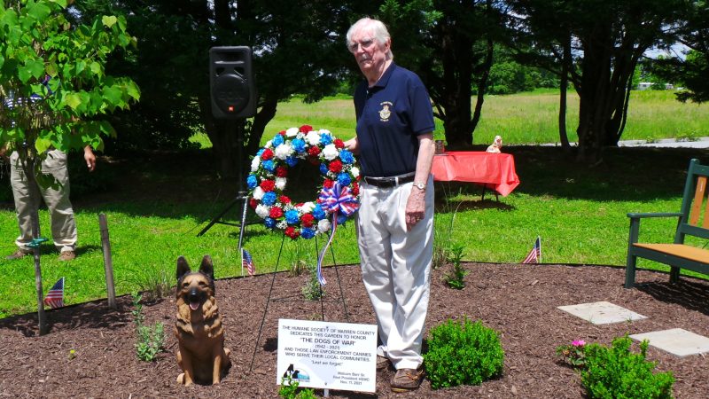 A crowd of about 30 participants and spectators gathered at the Humane Society of Warren County’s (HSWC) Julia Wagner Animal Shelter at 1 p.m. on a beautiful late spring afternoon, Sunday, May 29, for the first annual Dogs of War and Law Enforcement K-9 team event at the new Dogs of War Garden of Remembrance on the shelter grounds. Now if you’ve attended previous Memorial Day events over the past decade at either the downtown Front Royal Gazebo-Village Commons area or Warren County Courthouse lawn, you may be thinking “This isn’t the first Memorial Day Dogs of War remembrance here” – and you’re correct.
