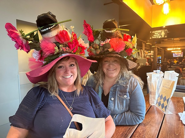 Wearing traditional ladies’ fancy Kentucky Derby headgear, Crystal Cline poses with retired jockey Diane Crump, the first woman horse race rider in the country and the first woman to compete in the Kentucky Derby. Photos by Blake Pierpoint.