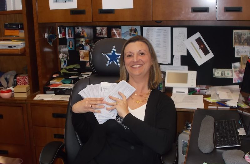 In late January 2018 Jennifer McDonald displays alleged winning slot machine tax receipts in her EDA office for a Royal Examiner story on her ‘gambling luck’ at Charles Town’s Hollywood Casino.