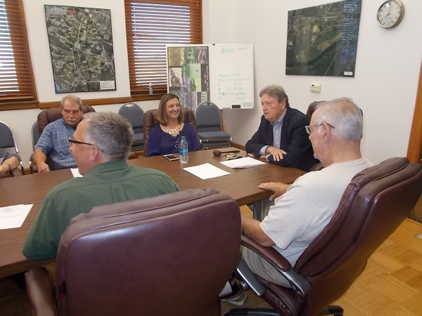 Billy Biggs, right foreground light shirt, directly across EDA meeting table from Jennifer McDonald in Sept. 2018, about a month before his retirement and three months before McDonald’s forced resignation. Royal Examiner File Photos by Roger Bianchini