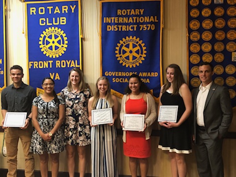 On Friday, May 25, at its regular meeting, the Rotary Club of Front Royal will make its annual scholarship awards to one Skyline High School student and three Warren County High School students.