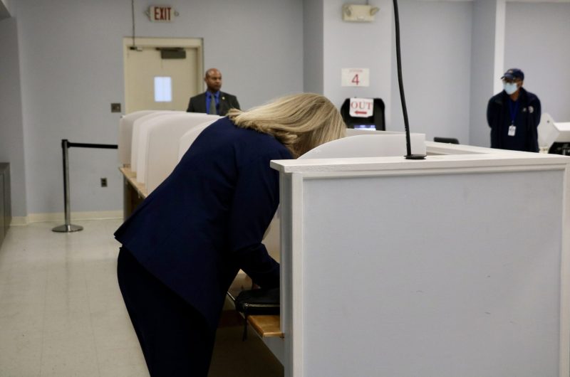 Virginia Gov. Abigail Spanberger casts her ballot in favor of a referendum to allow a one-time mid-decade redistricting of congressional maps. (Photo by Charlotte Rene Woods/Virginia Mercury)
