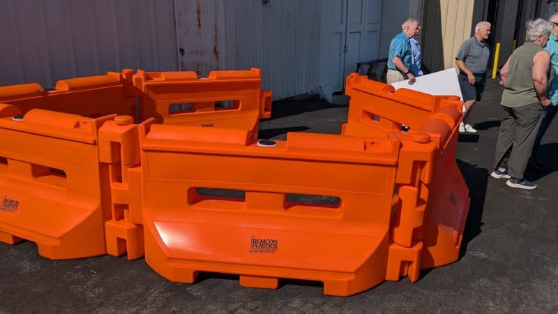 Each barricade is constructed from high-quality polyethylene plastic, making it lightweight when empty but roughly 600 pounds when filled. Designed to withstand weather and resist splitting or cracking, these barriers are also cost-effective and reusable—an investment that can serve the town for many years.