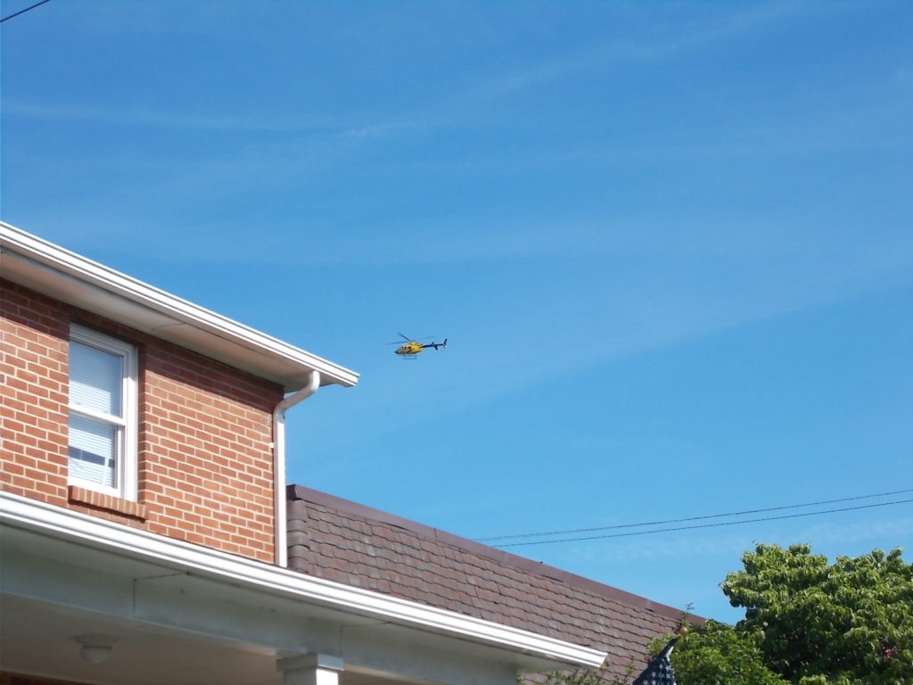The bright yellow markings of the involved helicopters indicated they were likely from the Front Royal Airport-based PHI Air Care 4 service.