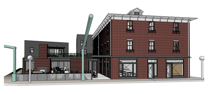 Their vision for the building includes full restoration of the current structure along with compatible additions that would allow the building and property to be a center of commerce for the east end of Main Street. The architectural renderings show space for indoor and outdoor dining, offices and perhaps apartments.