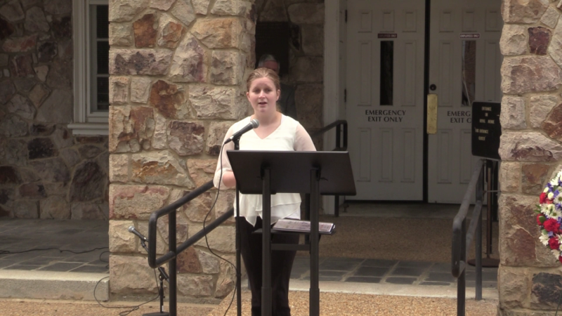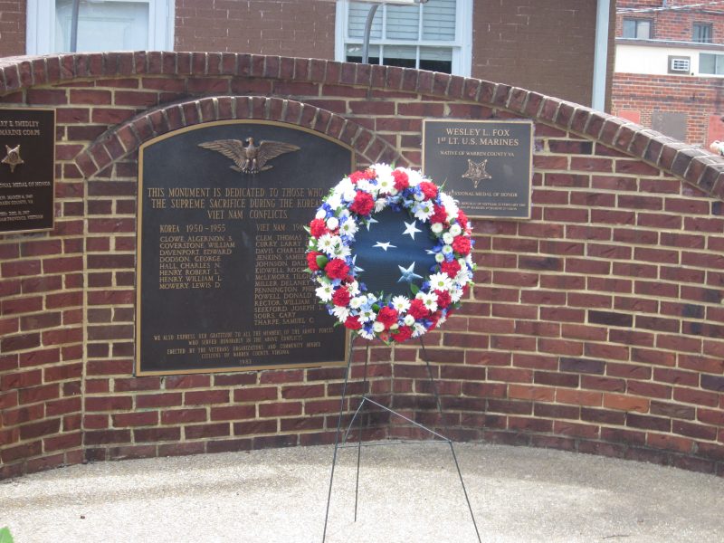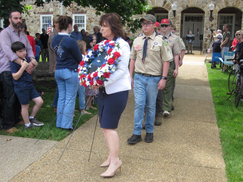 Local State Representative Delores Oates (below) placed the wreath at the memorial to Warren County and Front Royal’s war dead, accompanied by Scout Troop 52, which presented and retired the colors. Photos by Roger Bianchini. Video by Mark Williams.