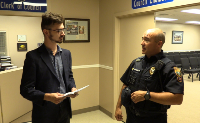 Royal Examiner reporter McCarthy Andrews speaks with Front Royal Police Chief Kahle Magalis about the purpose the CITAC will serve for our community. Photo and video by Mark Williams, Royal Examiner.