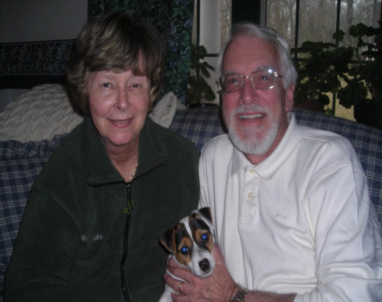 Chuck and Margaret Huber pose with their beloved Jack Russell Terrier. Courtesy Photo/Calvary Episcopal Church