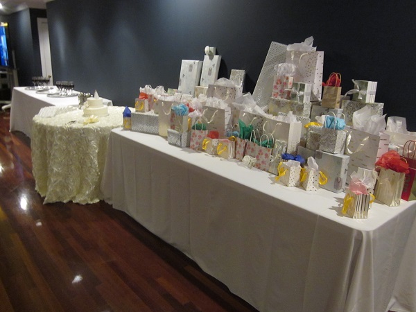 The wedding present table, and cake beyond – well, it’s not a real wedding, there’s enough to go around …
