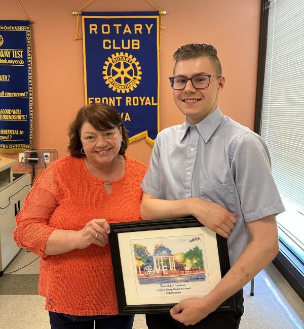 Cody Henderson, Skyline, received the Kym Crump Student Art Award. Crump, also a former president of Front Royal Rotary and executive director of the Blue Ridge Arts Council, attended the presentation to Cody.