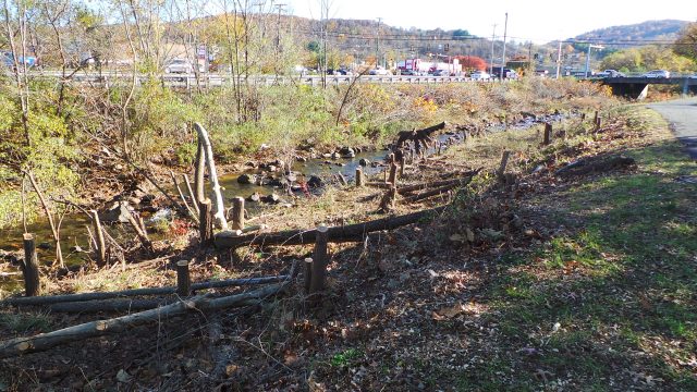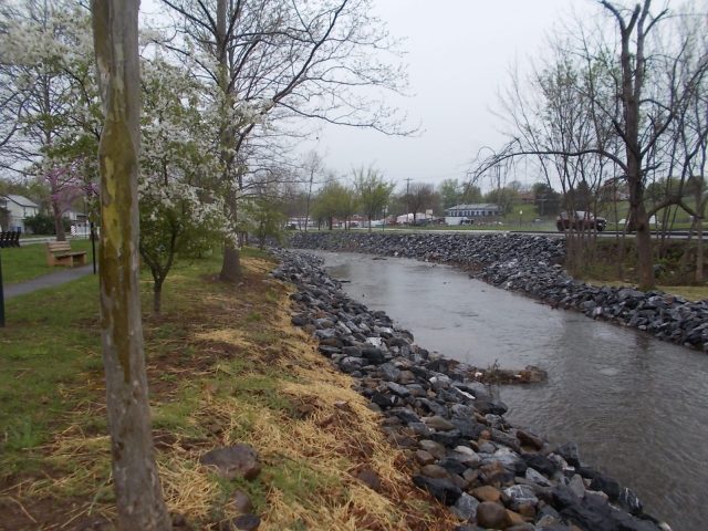 Recreational creek access has been eliminated along much of the impacted area along Front Street where riprap rocks have replaced vegetation along this section of the Shenandoah Greenway Trail.