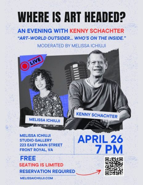 An evening of bold ideas, challenging conversations, and a rare opportunity to hear from one of the art world’s most outspoken figures is coming to Front Royal. On Saturday, April 26, at 7:00 p.m., renowned artist, curator, and writer Kenny Schachter will be interviewed live by Melissa Ichiuji in her Main Street gallery. The public is invited to attend, though space is limited and advance registration is required.