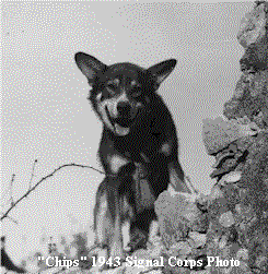 Chips, a locally-trained war dog assigned to the Signal Corps, circa 1943