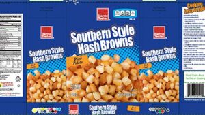 The company is recalling 2-pound bags of Harris Teeter Brand Frozen Southern Style Hash Browns in Virginia, Maryland, District of Columbia, Delaware, North Carolina, South Carolina, Florida and Georgia.