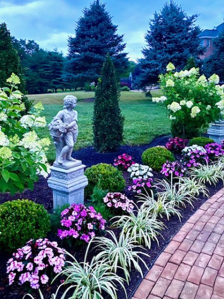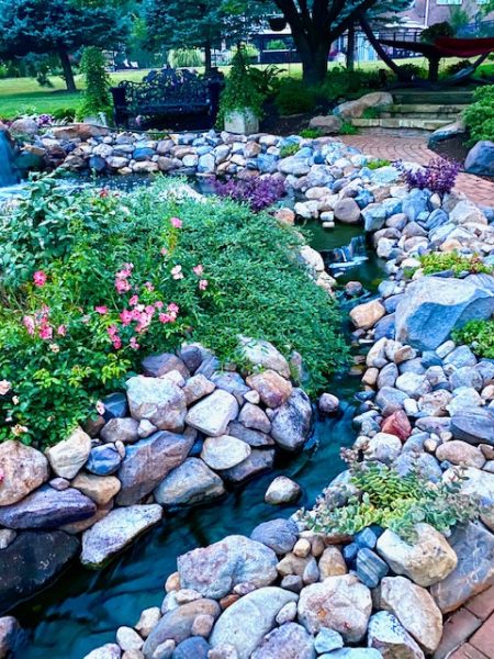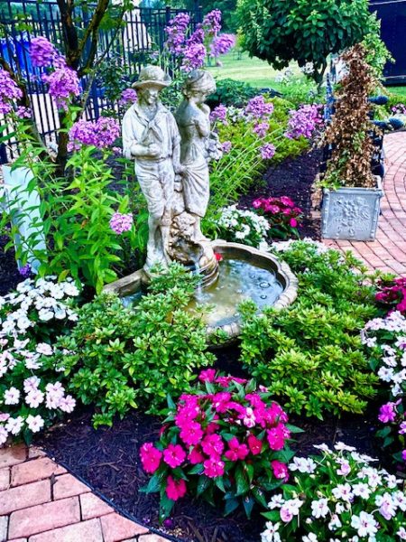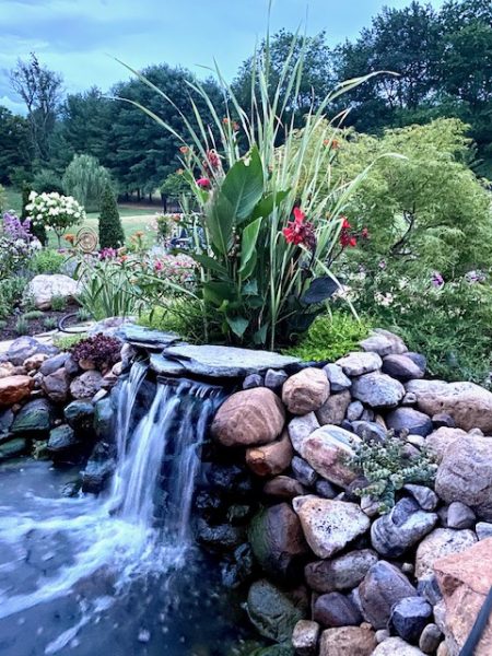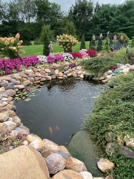 Some 35 guests at the Milldale Valley Court home of hosts Sheron and John Piazza on September 19, shared their delight at the garden surrounding their home from the curbside mailbox to the tiered koi ponds in back that feature some 4,000 plants – yes, 4,000! – flowers, fruit and ornamental trees, bushes, and other horticultural wonders that left the celebrants and other guests gasping with their superlatives.
