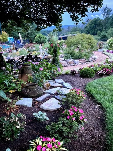 The garden was designed by retired landscaper Sheron Piazza who described it as a “culmination of a lifetime of experience, hard work, starts and stops, planning, re-planning, love, blood and tears.” She thanked her husband “for all his encouragement and support.”