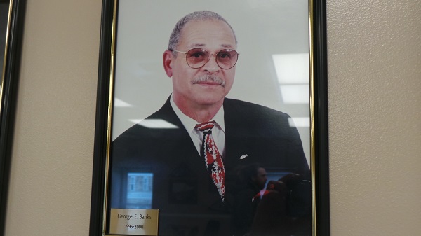George Banks on ‘Mayor’s Row’ on wall of Front Royal Town Hall meeting room. Royal Examiner Photo by Roger Bianchini)