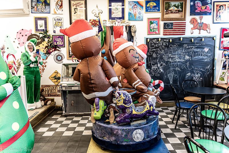 Inside the shop, Nina Huck, dressed in a sparkly elf outfit with jingle bells on her shoes and mischief in her smile, was caught off guard. “They just showed up today,” she explained, wide-eyed but laughing. “We thought it’d be fun to spread some holiday cheer… but they’re a little too crazy—even for me!”